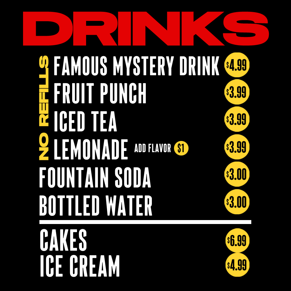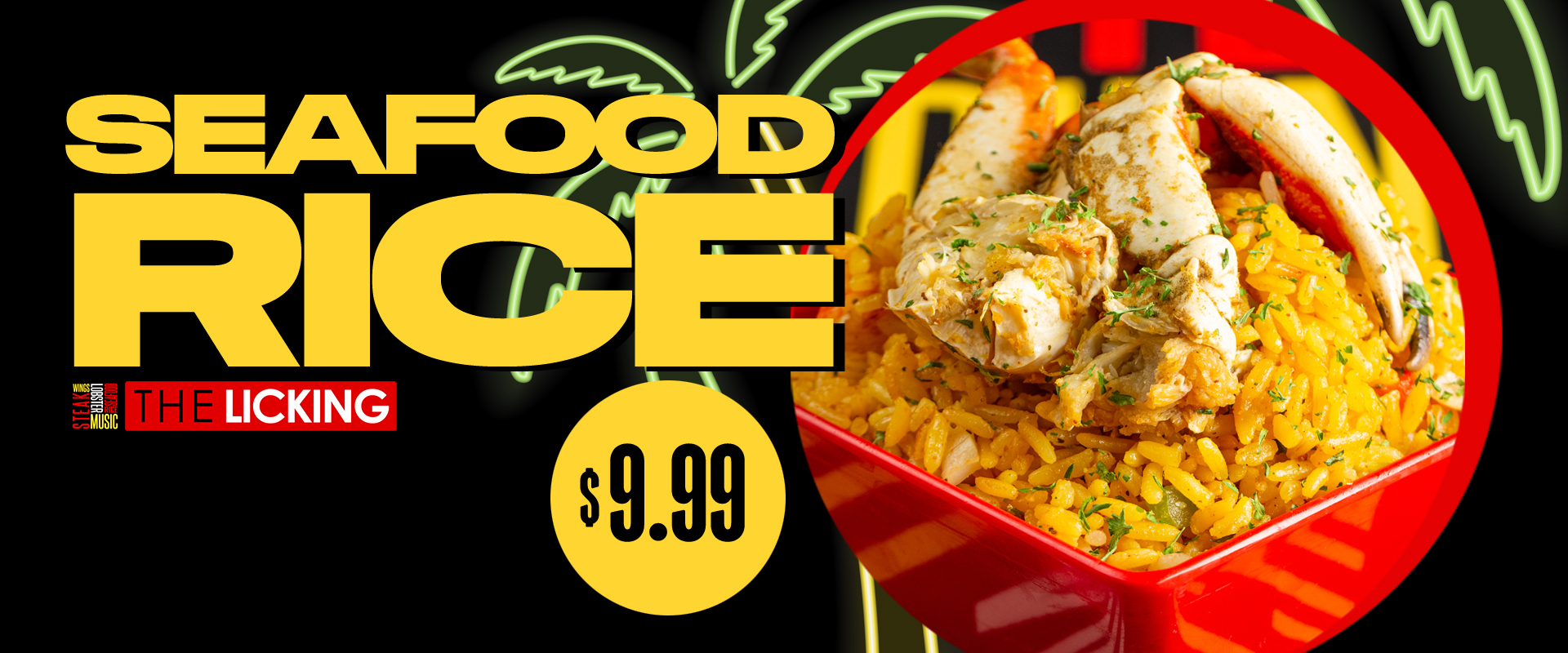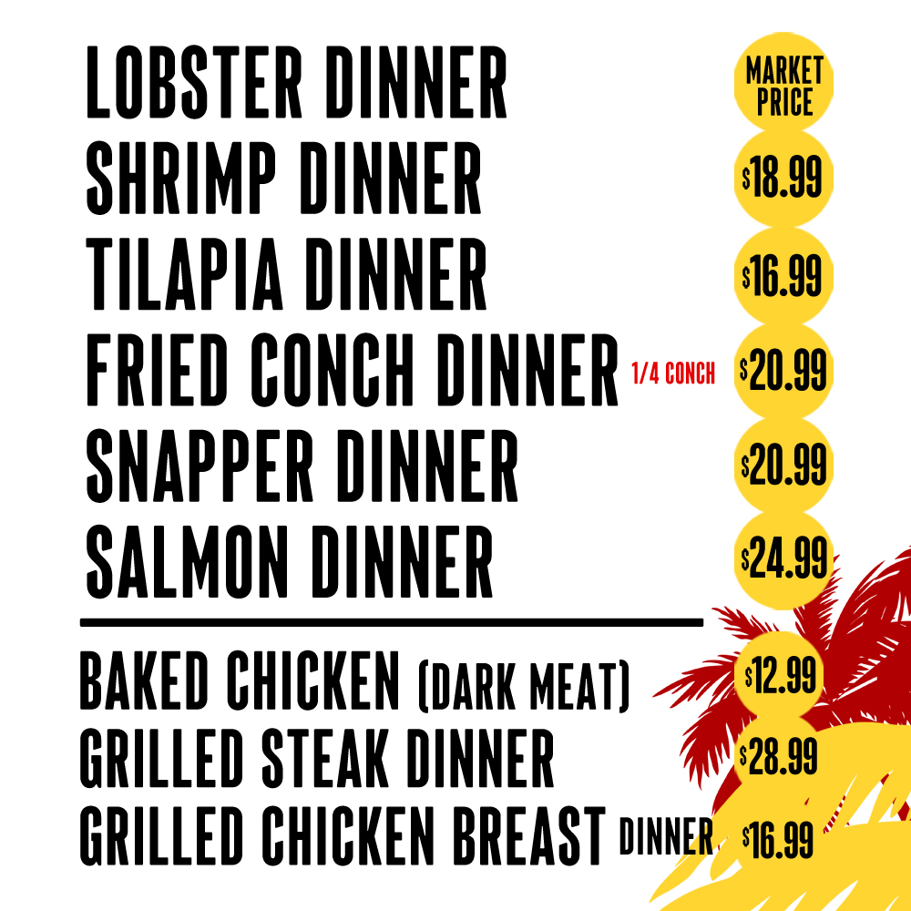 WINGS · SEAFOOD · MUSIC · PASTA · DRINKS · TURKEY WINGS · FRIED LOBSTER · MAC & CHEESE · MYSTERY DRINKS · FISH TACOS · CALAMARI · SALMON · CHICKEN TENDERS · LOBSTER MAC ·